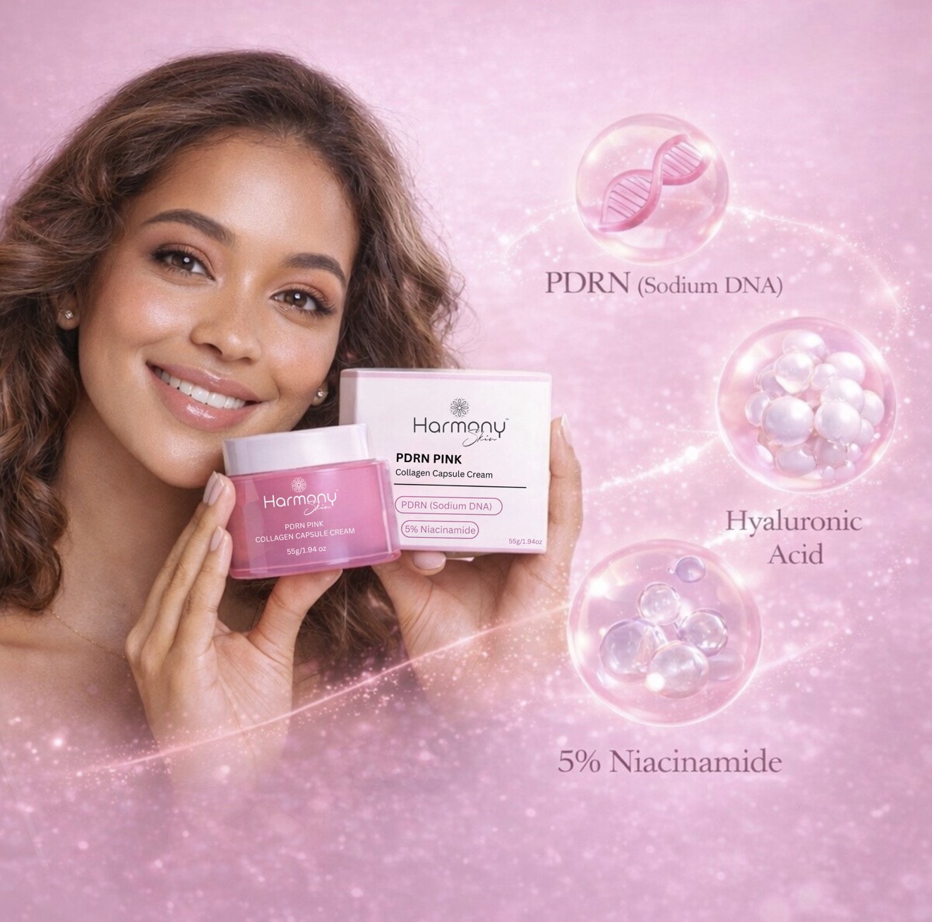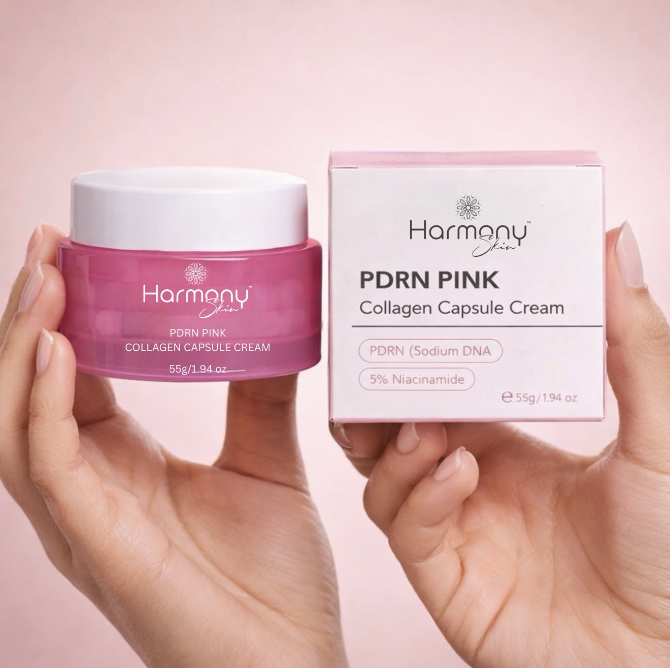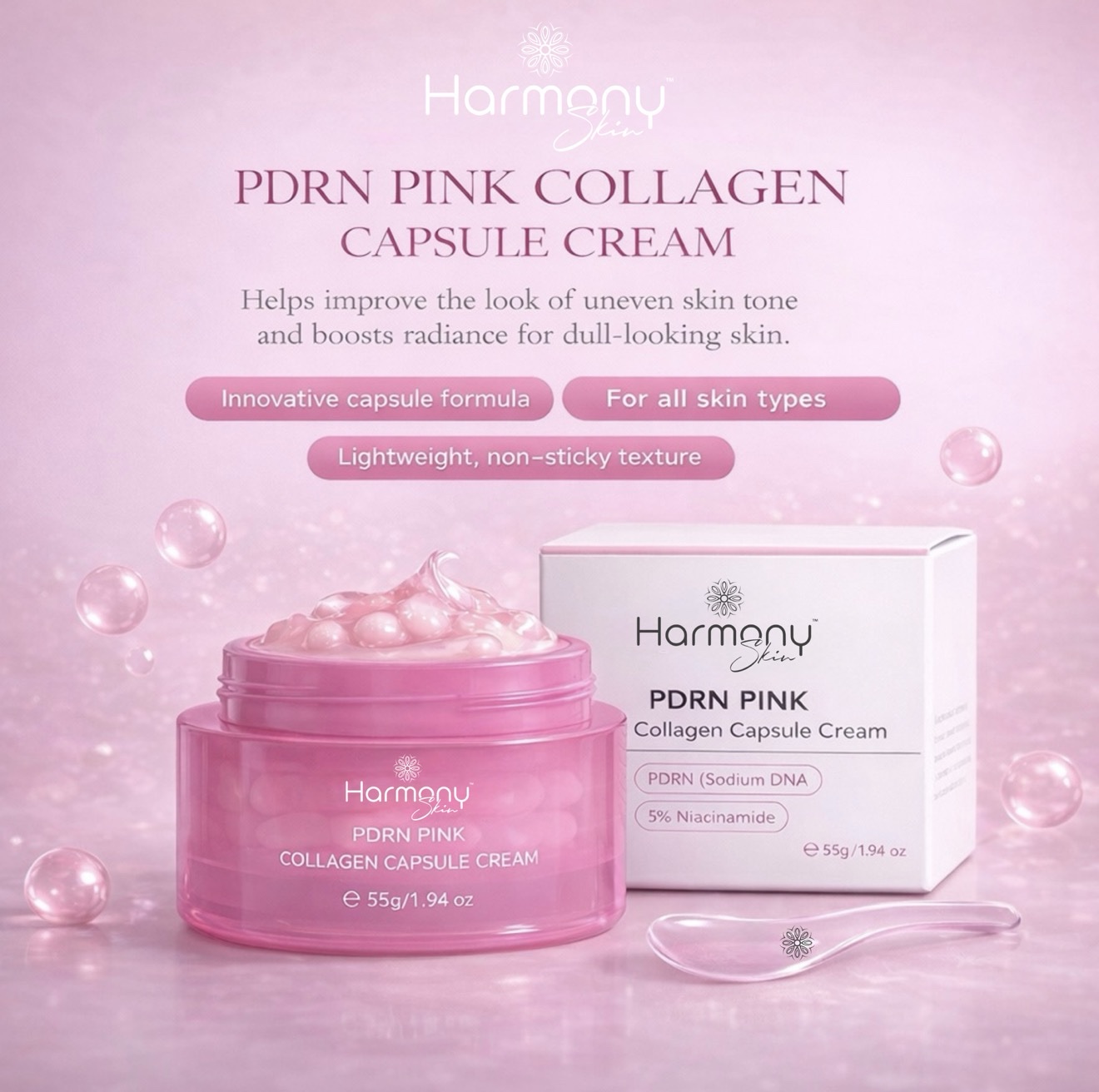 HarmonySkin™ PDRN Pink Collagen Capsule Cream (55g) is your next-level luxury moisturiser — an exclusive, premium capsule-formulated cream designed to deliver a smooth, hydrated, glass-like glow.